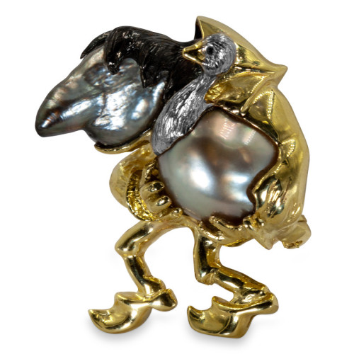 Брошь с двумя таитянскими жемчужинами "кеши" выполнена в единственном экземпляре.