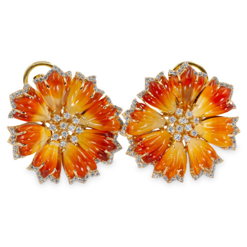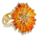 Каждый лепесток этих воздушных цветов вырезан вручную из медового сердолика.